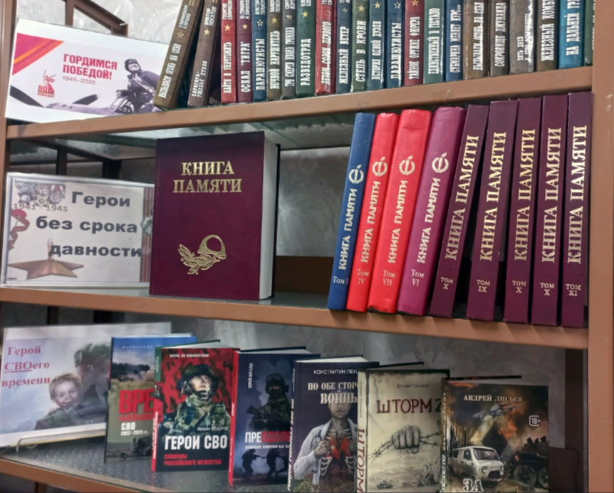Для участников мероприятия была подготовлена книжная выставка «Сынами славится Отечество». На выставке были представлены книги о героях, о людях, совершивших подвиги, о тех, кто своим примером вдохновляет других на добрые дела.