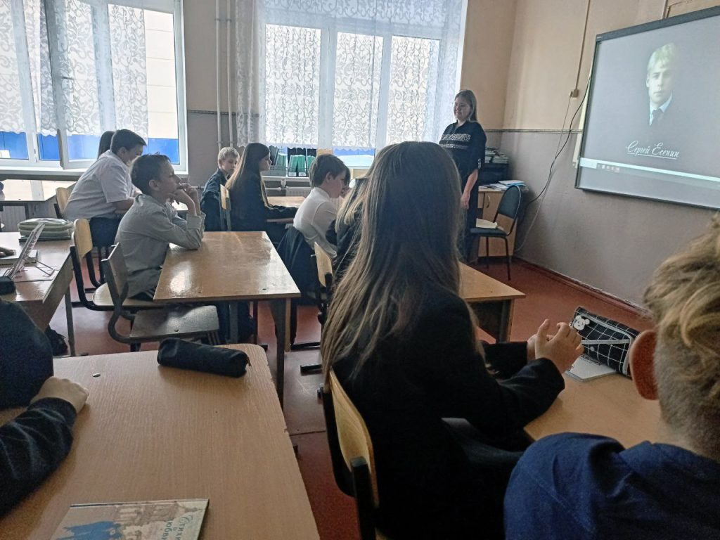 В ходе мероприятия ребятам рассказали о том, что в детстве поэт был отдан на воспитание бабушке и дедушке, благодаря которым Есенин рос в атмосфере народной поэзии и русского фольклора, о том, что душевные стихи Есенина вдохновляли композиторов разных лет, поэтому на его произведения написано множество песен и романсов.