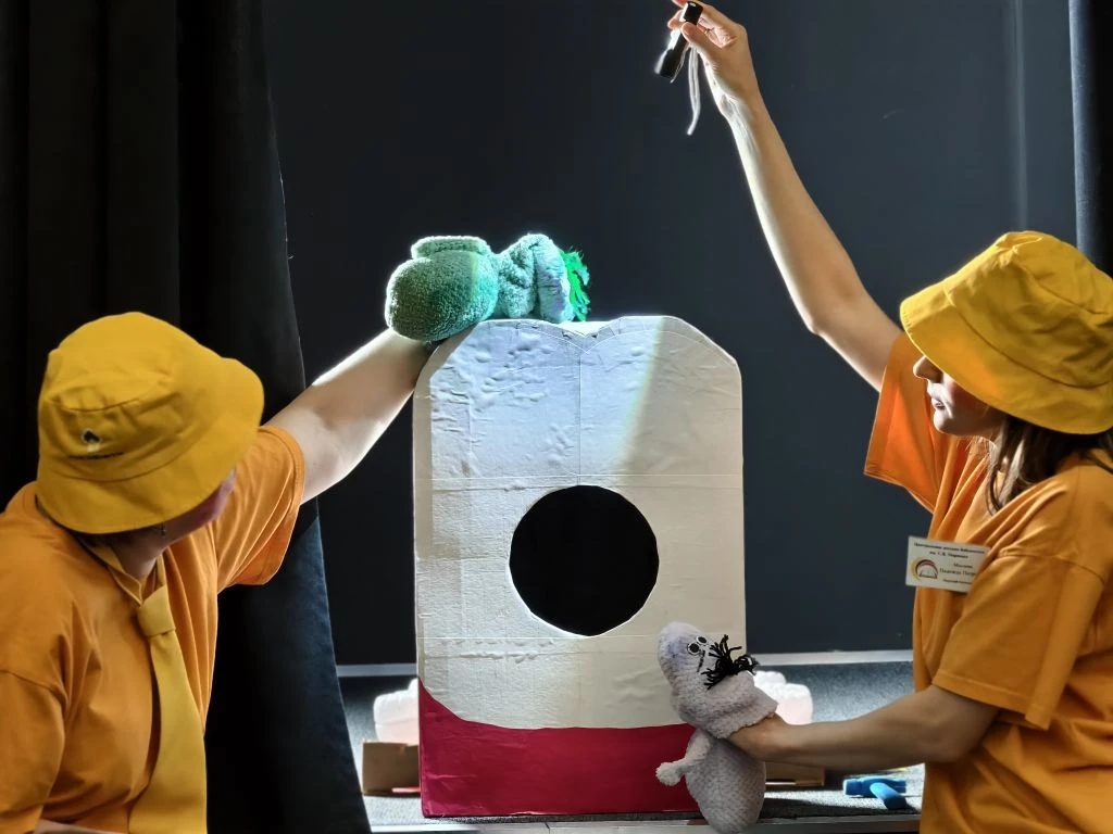 Спектакль прошёл в формате полного вовлечения: дети не просто смотрели со стороны, а стали активными участниками истории. Они помогали Йенсу советами, играли с героями прямо в зале, хлопали, кричали и… вспомнили, как важно дружить с зубной щёткой!