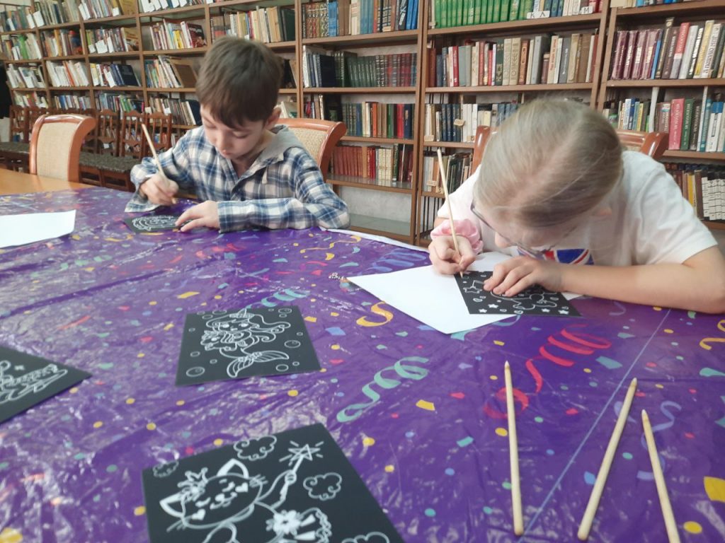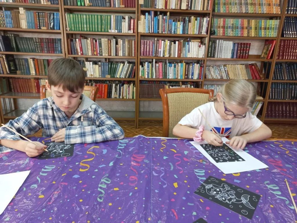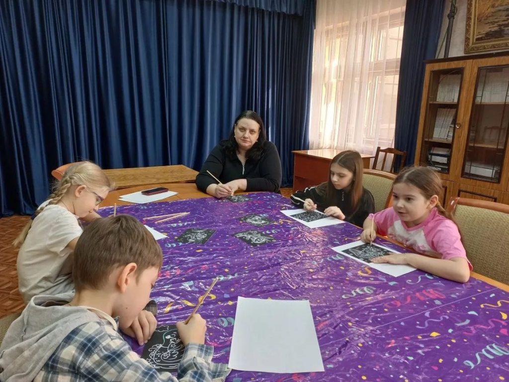 19 марта в библиотеке ДК «Юбилейный» состоялся мастер-класс «Яркий мир граттажа», который был проведен с детьми участников СВО.