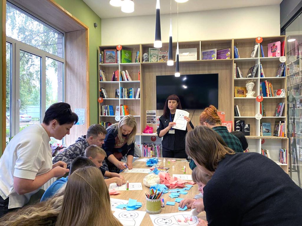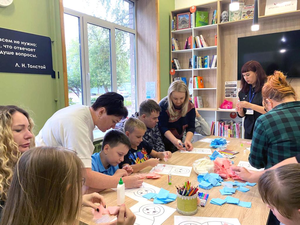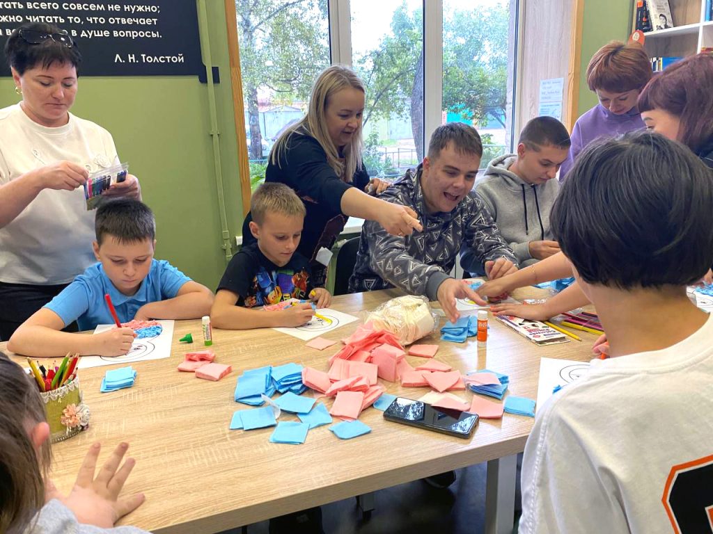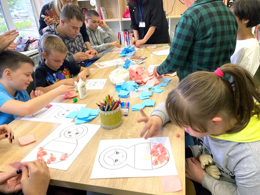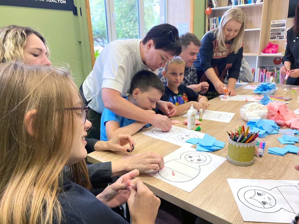12 сентября ведущий библиотекарь Чиндяева Наталья провела в Центральной библиотеке им. Л. Толстого мастер-класс, в котором приняли участие дети из АНО «Равные возможности». Ребята с большим энтузиазмом создавали аппликации в виде неваляшек, используя цвета российского триколора.