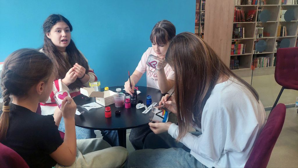 — Ольга Николаевна Юдина, заведующая отделом обслуживания читателей, открыла секреты росписи стекла, и в руках детей обычные бокалы превращались в дизайнерские шедевры.
