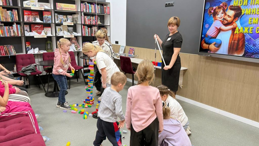 — В воскресенье энергию творчества сменил азарт мастерства! Ребята узнали об истории Дня отца, а затем под руководством библиотекаря Веры Владимировны Овиновой окунулись в мир взрослых профессий через веселые интерактивные игры.