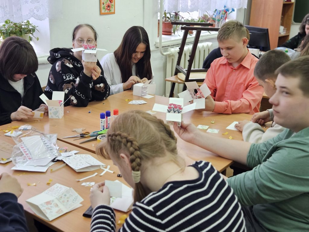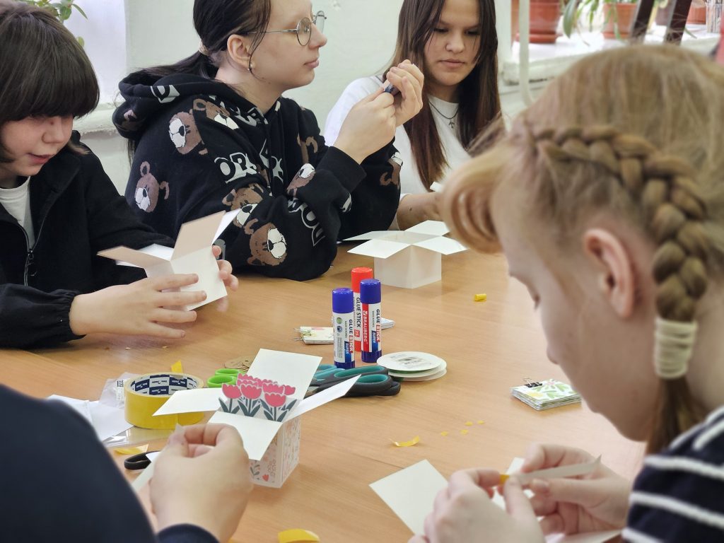 Кульминацией заседания клуба стал творческий мастер-класс. Под руководством ведущего библиотекаря Масловой Н. П. ребята смастерили яркие подарочные коробочки из цветного картона и бумаги. Ребята старались, ведь каждый хотел вложить в подарок частичку своей любви. В конце встречи юные мастера демонстрировали друг другу готовые работы, которые станут сюрпризом к празднику.