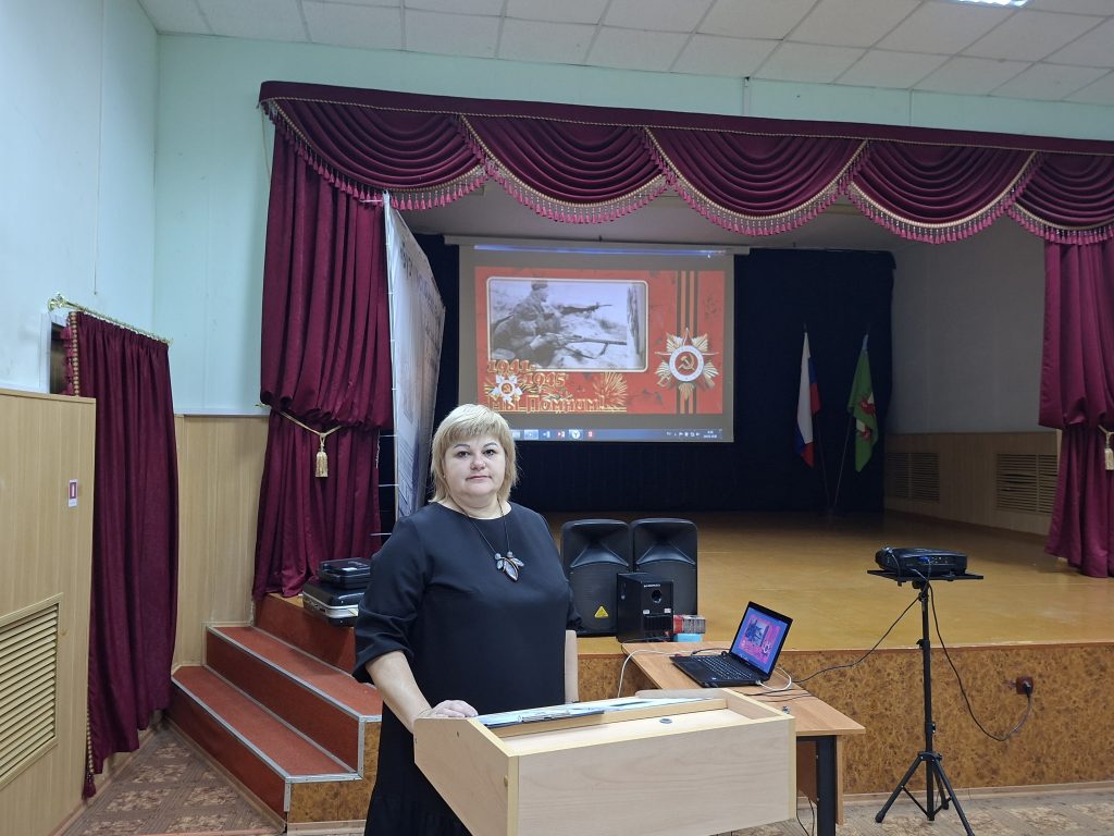 Ведущая Полторак Т.В. , заведующая библиотекой ДК «Юбилейный», в своей беседе затронула тему локальных войн современности. Почтили минутой молчания всех воинов-земляков, погибших при исполнении воинского долга в Афганистане, Чечне, Сирии.